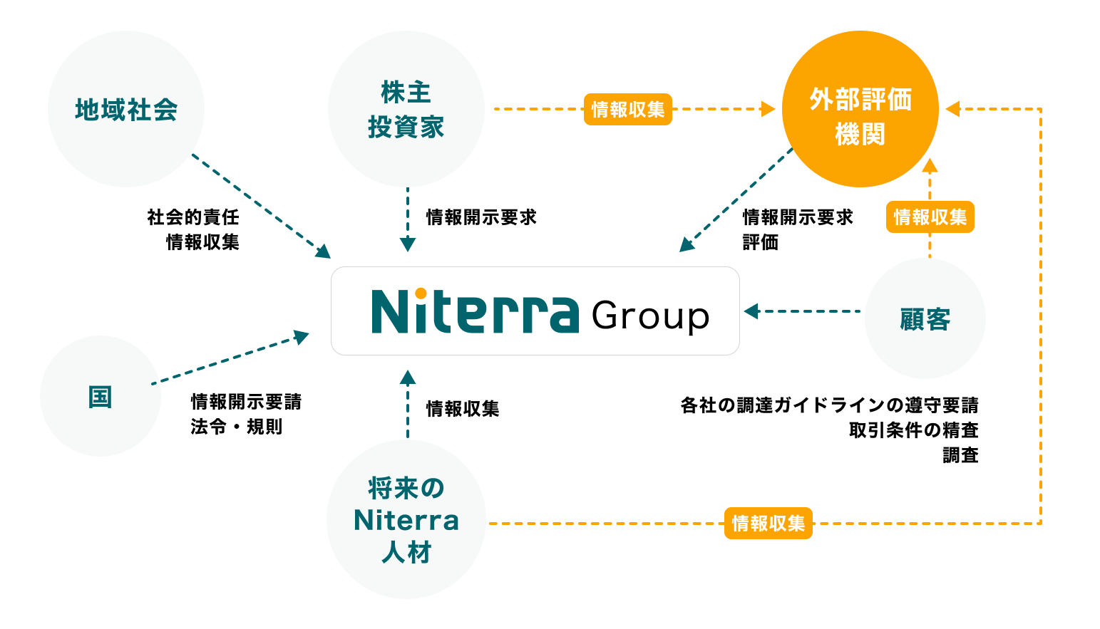 Niterraグループは、これからも「社会の要請を先取りする姿勢」で取り組みをすすめ、それを誠実に開示していくことで、企業価値の向上につなげていきます。